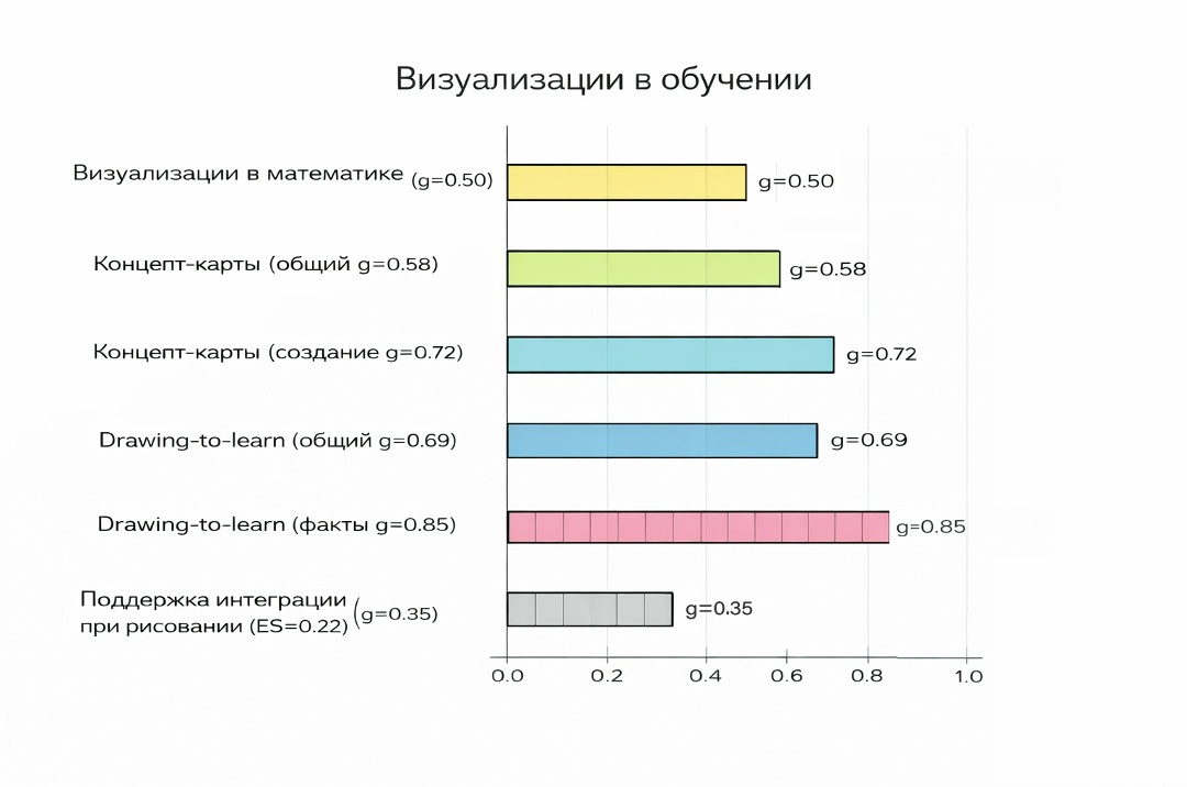 Именно такая работа с информацией, по данным исследований, усиливает понимание и запоминание, особенно когда студент сам создаёт схему, а не изучает готовую.